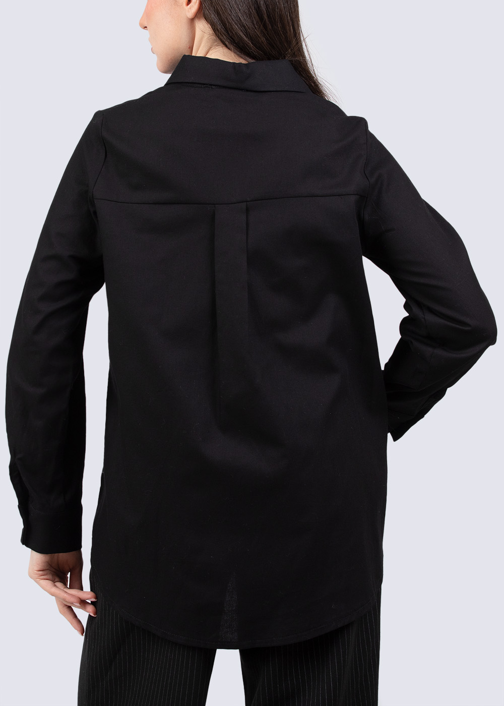 لباس در قسمت آستین و پشت کمر و پشت یقه کش دارد ، دارای چهار دکمه در جلو و قدکار کوتاه است.
