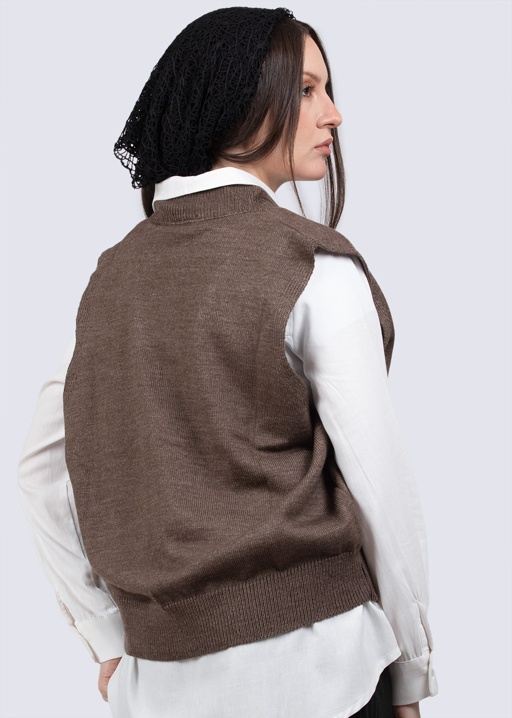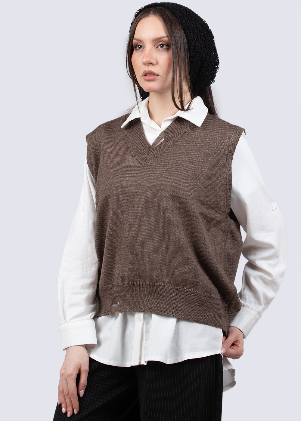 ژیله یقه هفت زنانه زاپدار به صورت تک میباشد و با شومیز استایل شده است.